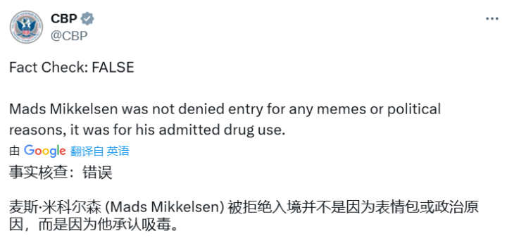 当地时间6月24日,美国海关和边境保护局在社交平台“X”上发帖称:米克尔森被遣返的原因是他吸毒,而非手机中存有表情包或其它政治方面的原因。