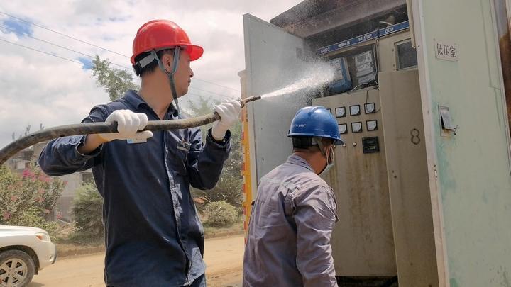 南方电网兴义供电局支援队以“三洗一吹一实验”的方式清洗修复被洪水浸泡过的配电设备。卢关文摄